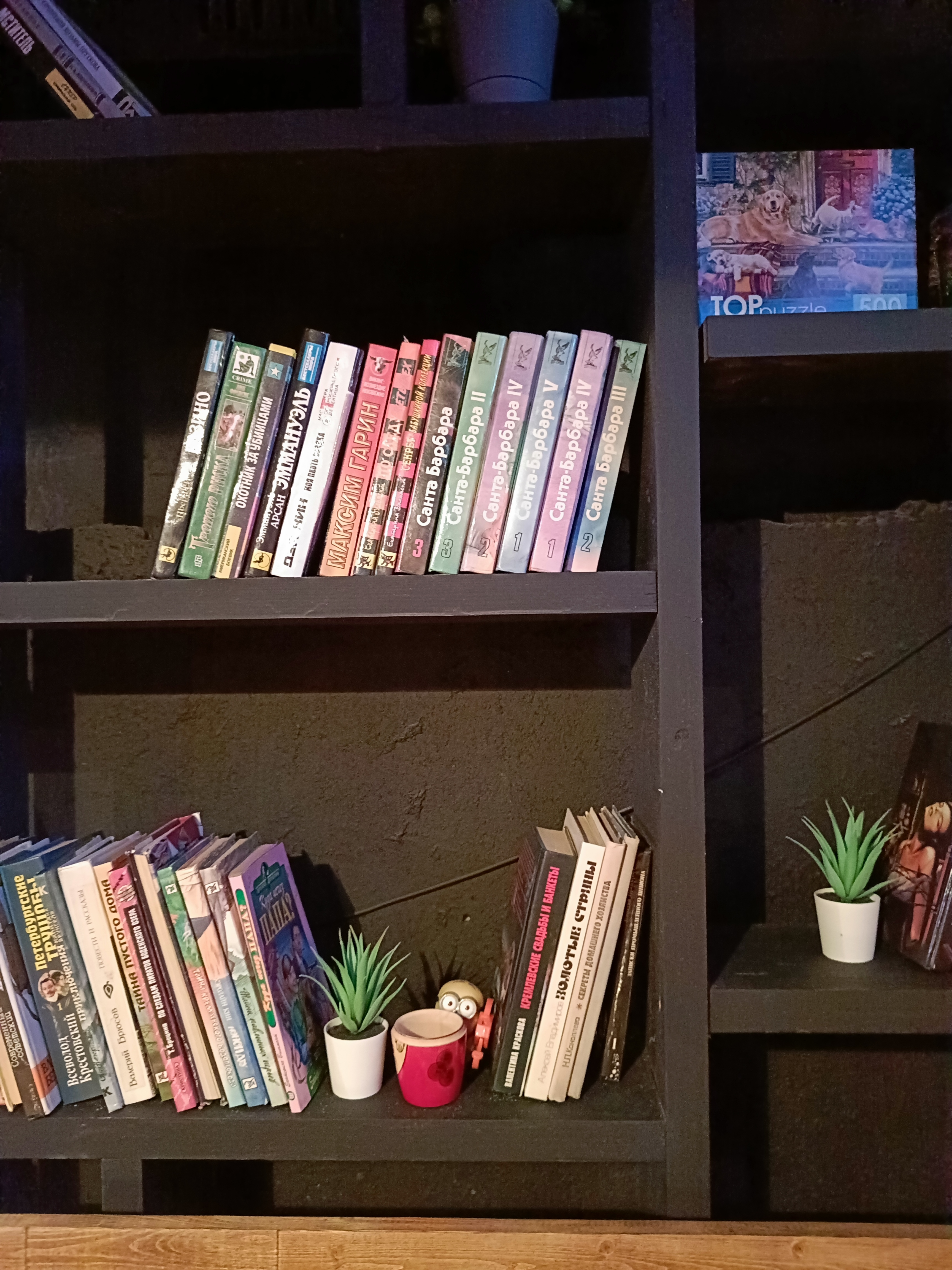 Позже заведение подверглось апгрейду, а полочка с книжками осталась по сей день. Санта-Барбара бессмертна.